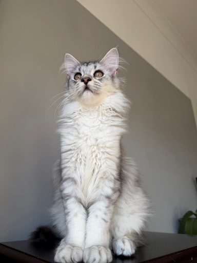 Mira is a super fun and confident kitten always into mischief. Very large girl. From our Oct 2025 litter.