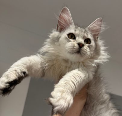 Magnus is an exciting kitten very big for his age, fabulous long tail and stunning black smoke coat, from our Nov 2025 litter. Very strong profile great boning.